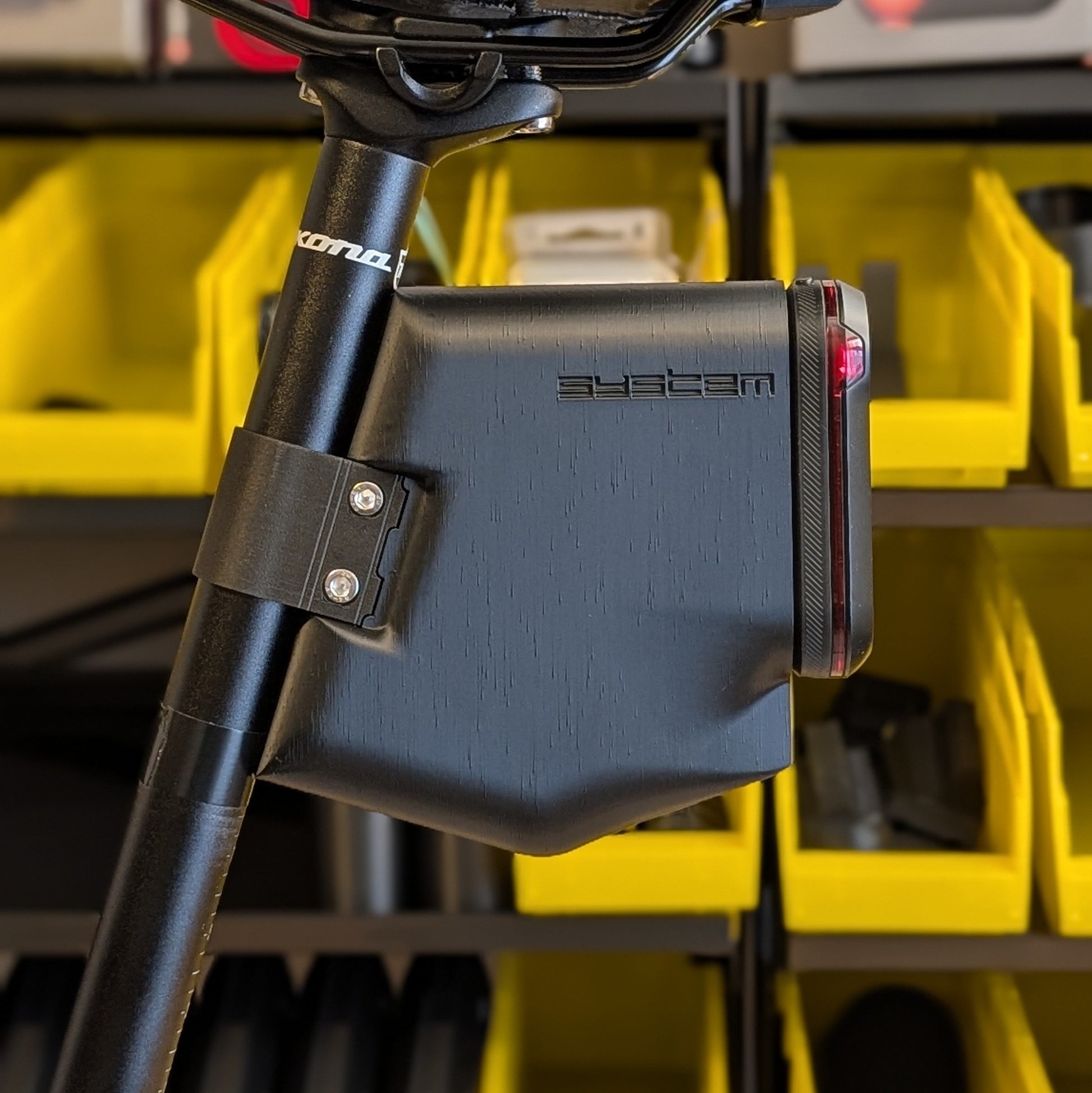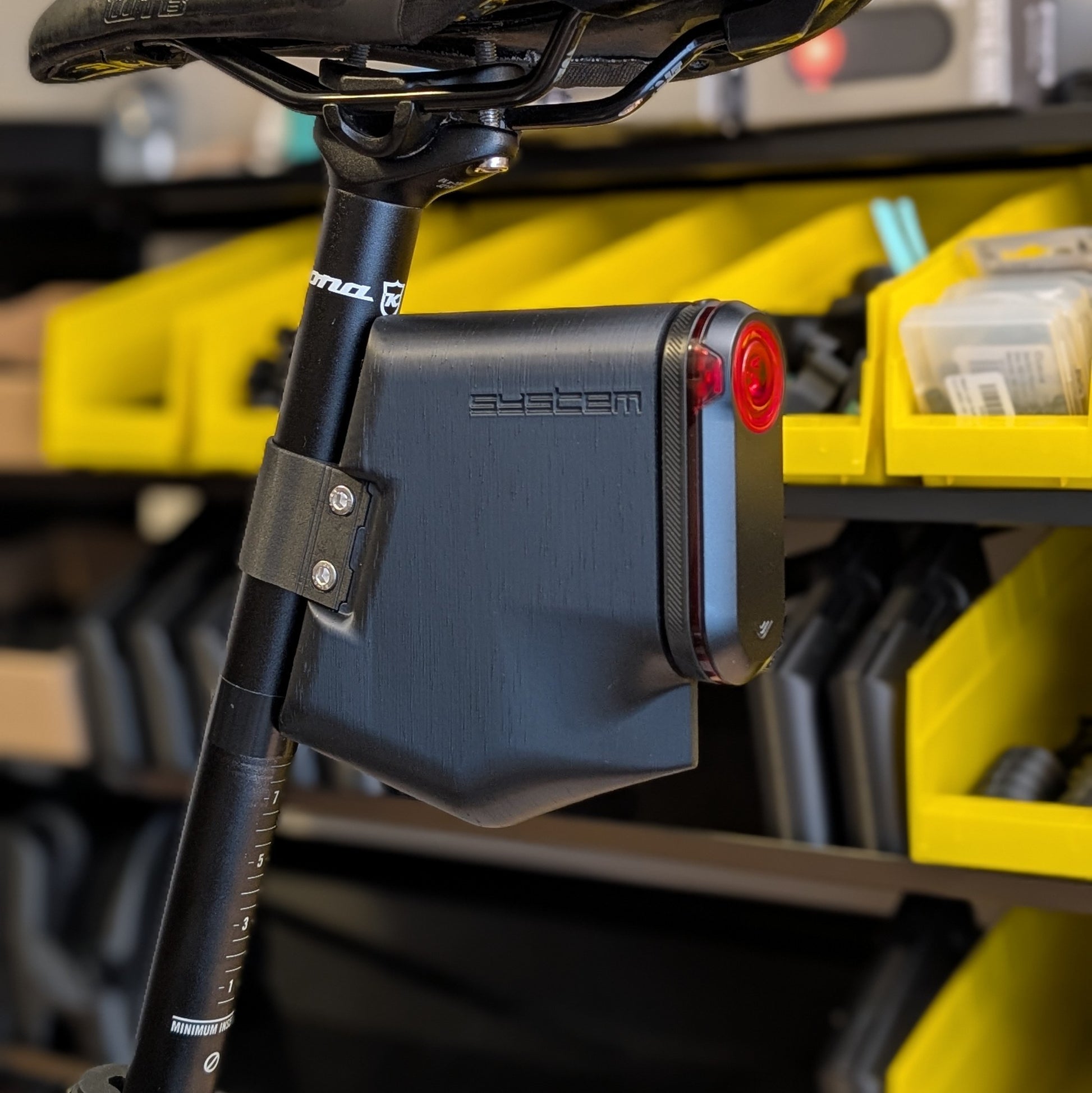 Designed to fit the popular Garmin Varia RTL515 radar light, this seat post tool pack strikes a sleek profile and fits road repair essentials (i.e. compact air pump, TPU tube, tire levers, etc). Be one of the first to own this newly designed product!