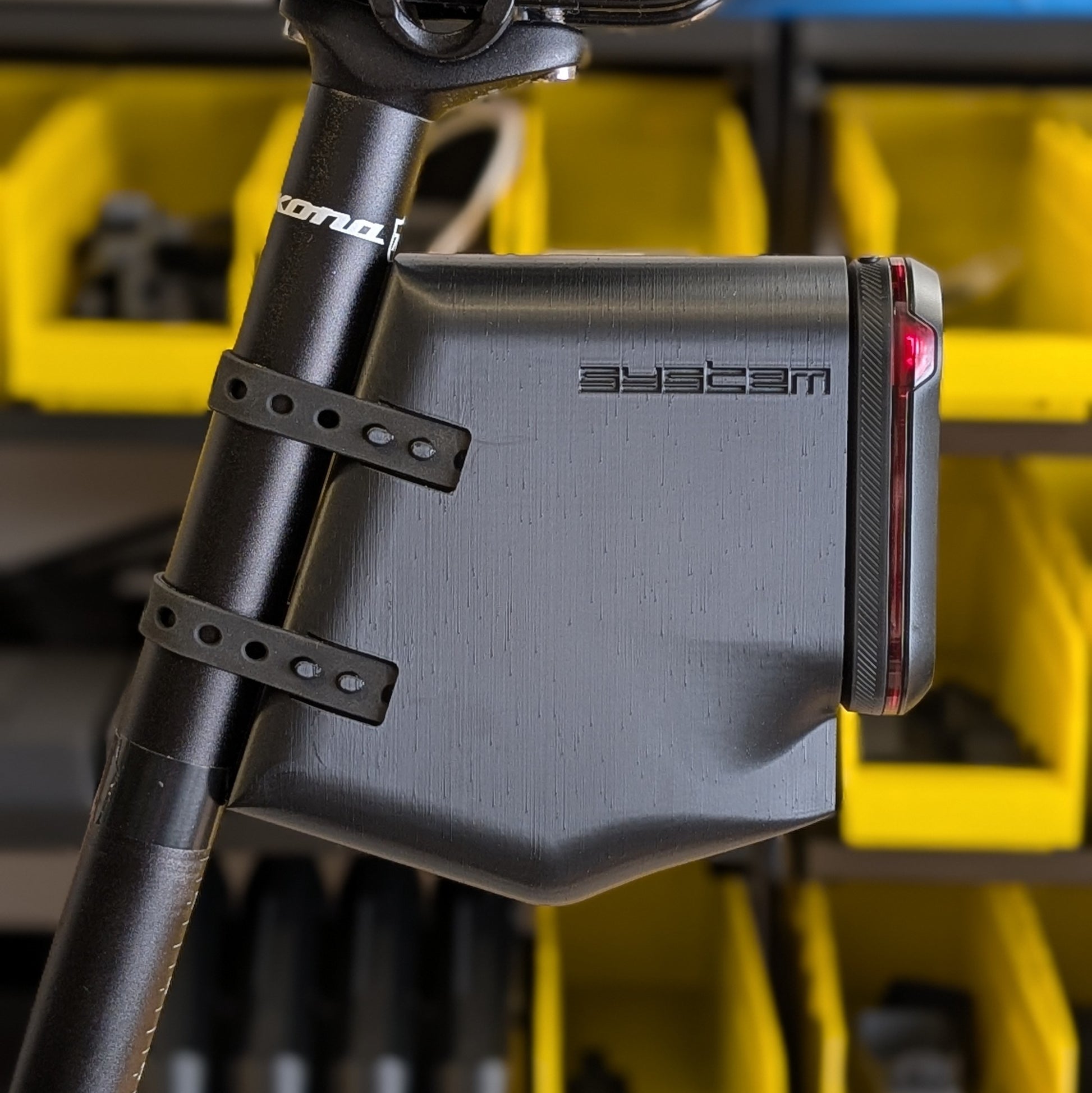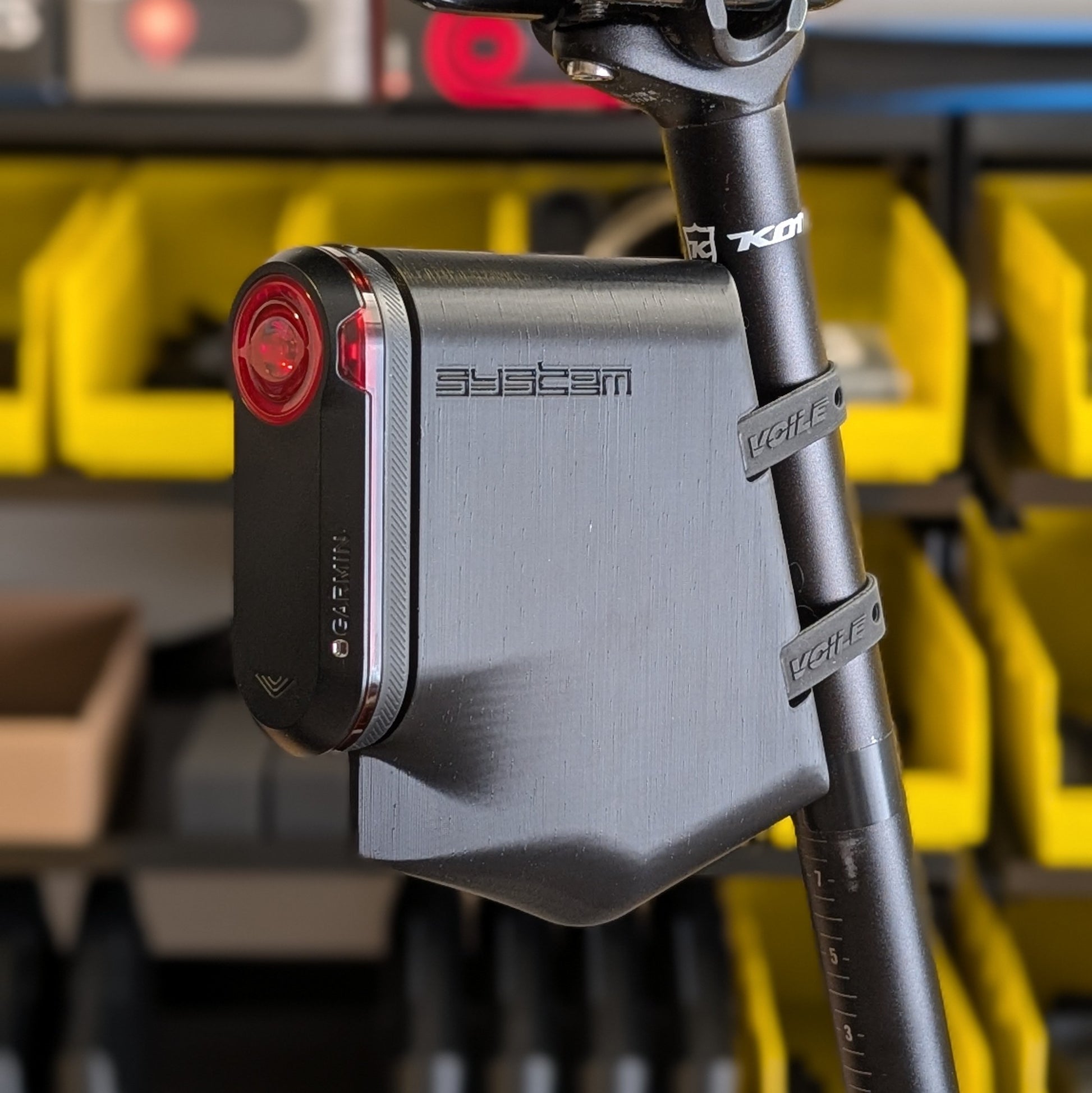 Designed to fit the popular Garmin Varia RTL515 radar light, this seat post tool pack strikes a sleek profile and fits road repair essentials (i.e. compact air pump, TPU tube, tire levers, etc). Be one of the first to own this newly redesigned product!